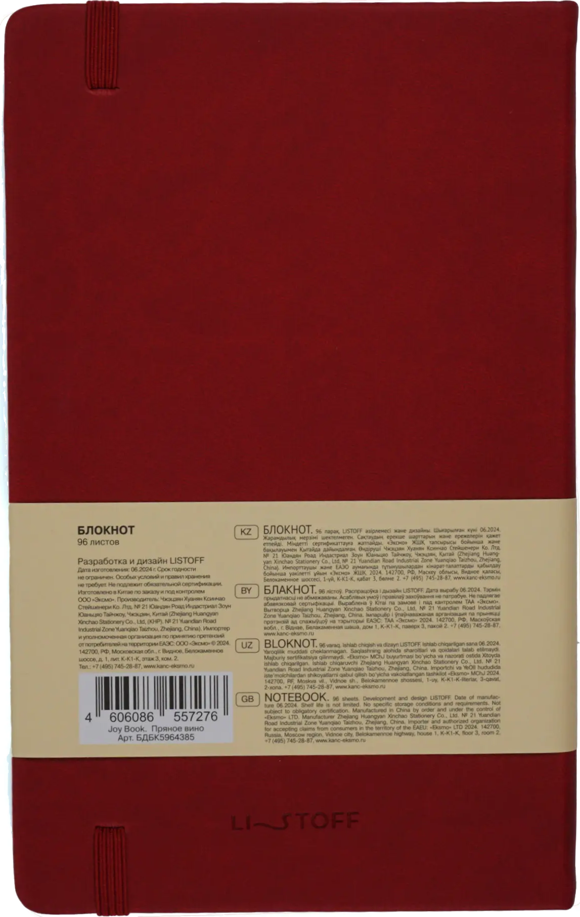 Книга для записей А5(135х213), 96л.,обл. иск. кожа, пряное вино, Joy Book ЭКСМО