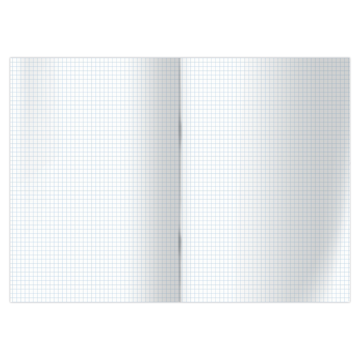 Внутренний блок, изготовленный из белой офсетной бумаги, содержит 96 листов, разлинованных в клетку.