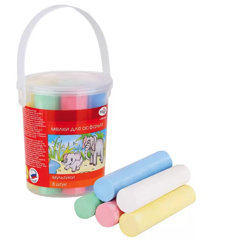 Мел цветной, 8шт 5 цв."Мультики" круглый в ведерке Гамма