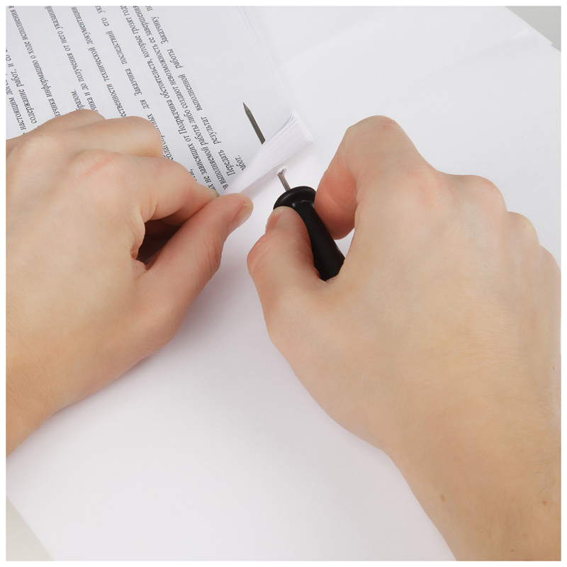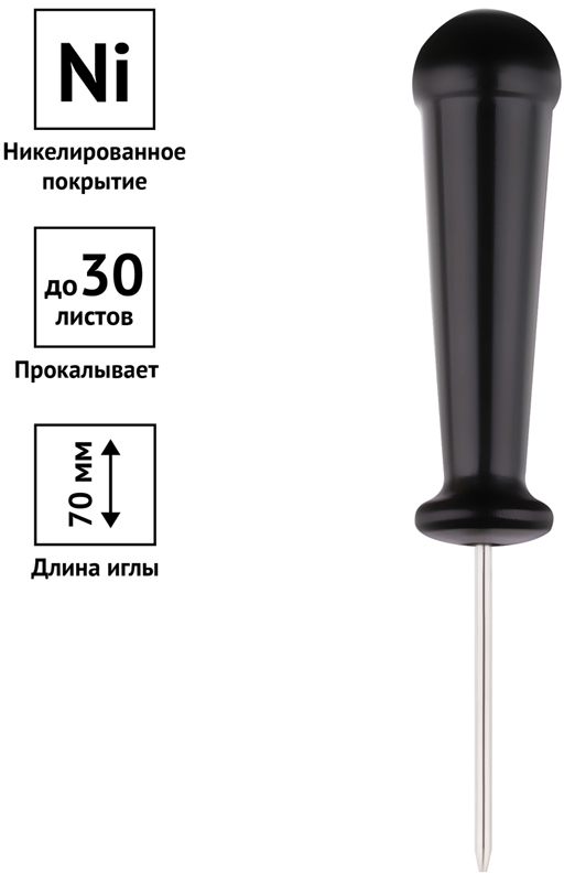 Шило обеспечивает прокалывание до 30 листов бумаги за один прокол, что делает его удобным инструментом для работы с документами и различными материалами. Товар представлен в упаковке с европодвесом.