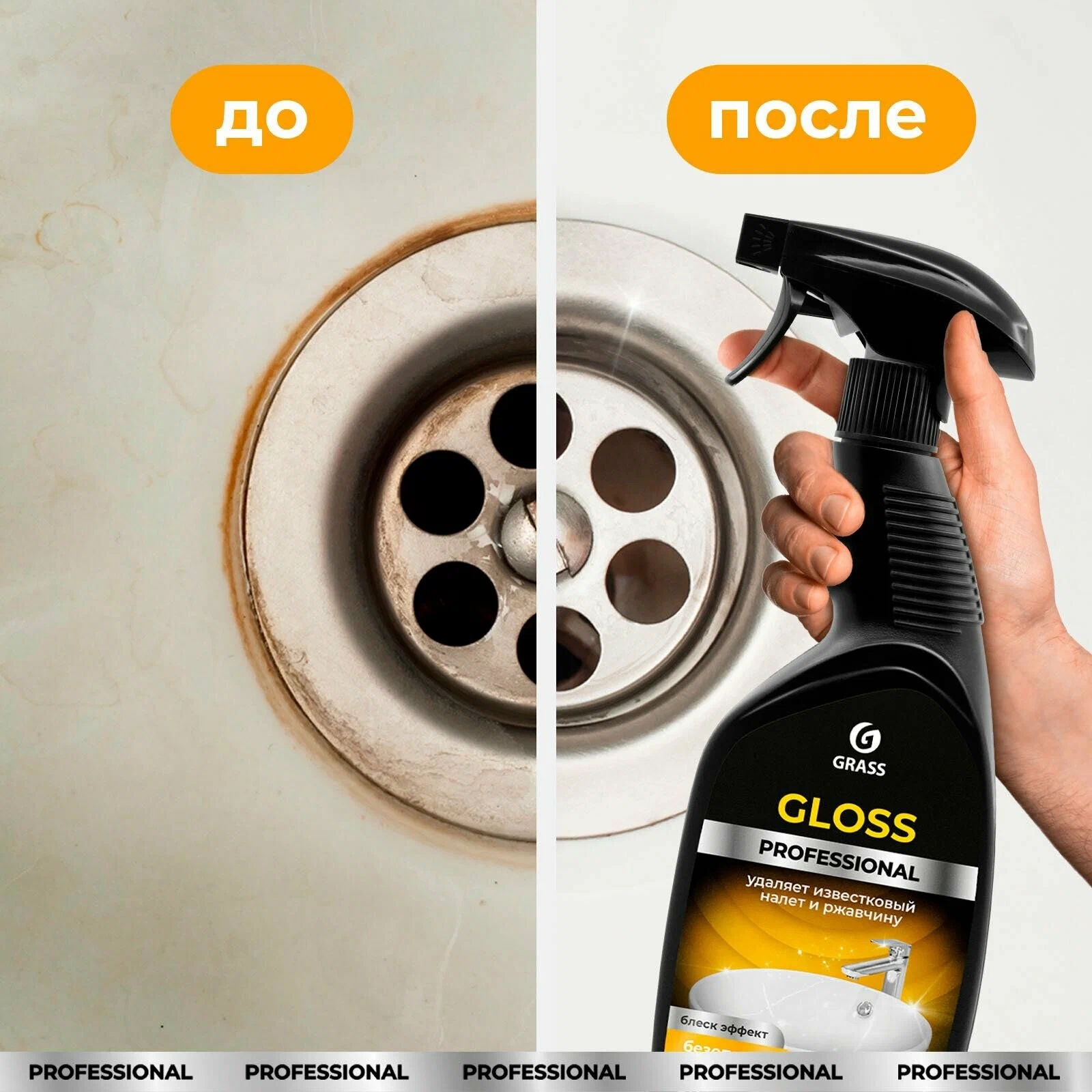Gloss Professional — мощное средство для глубокой очистки и сияющей свежести вашего санузла.
