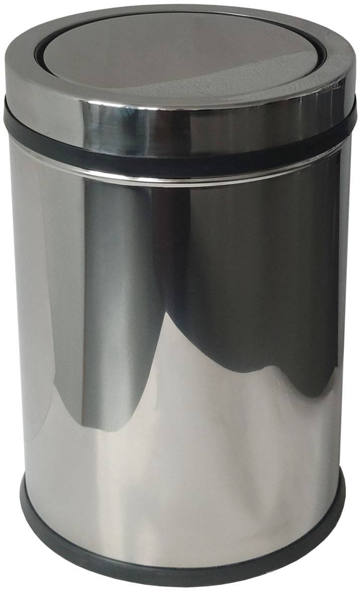 Практичная и вместительная урна-пепельница из металла, оснащённая вращающейся (плавающей) крышкой, которая скрывает содержимое и помогает удерживать запахи. Хромированная поверхность придаёт аккуратный, универсальный внешний вид и легко очищается.