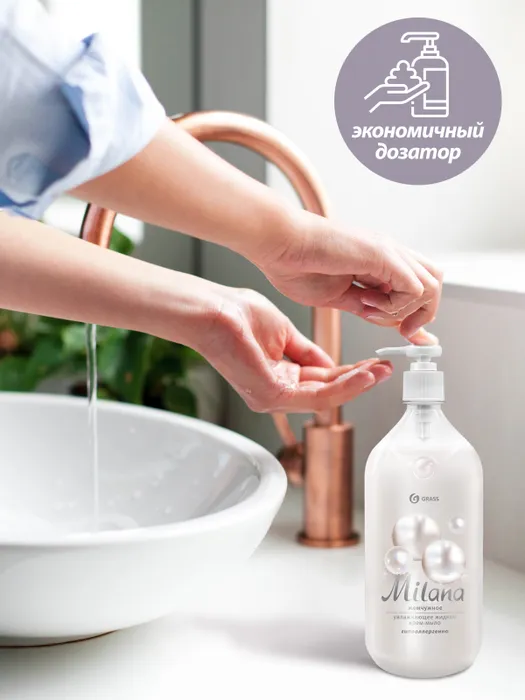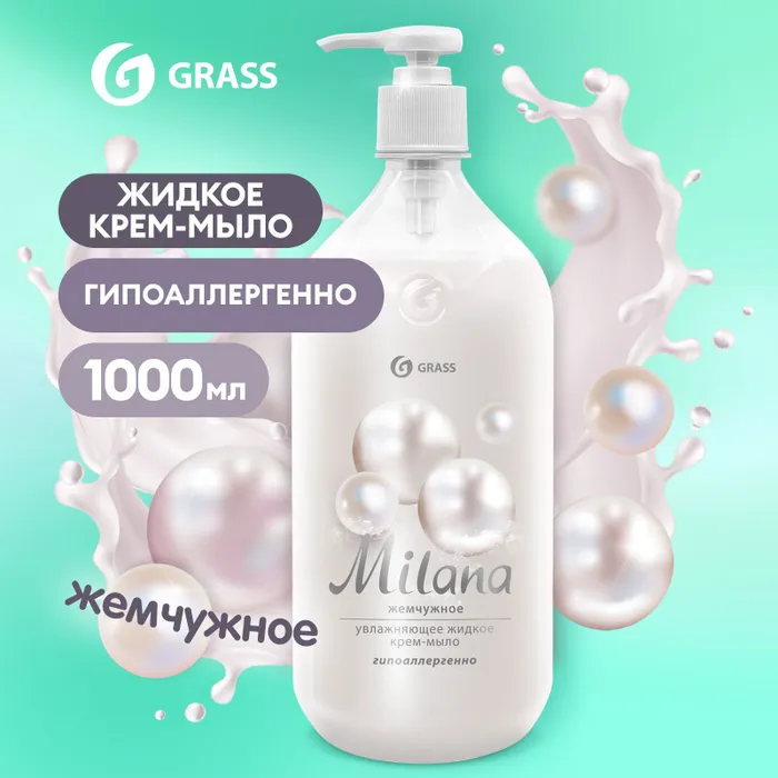 Мыло жидкое 1л крем, Жемчужное, с дозатором "Milana"