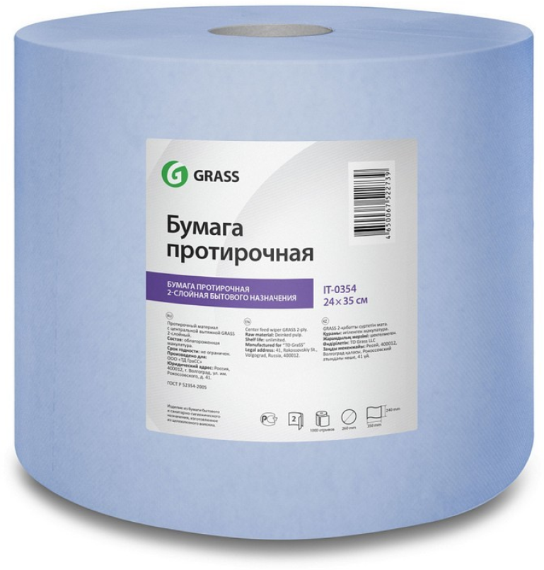 Протирочная бумага Grass — прочный и универсальный материал для поддержания чистоты на производстве, в офисе или дома. Благодаря плотной двухслойной структуре и высокой впитывающей способности она легко удаляет влагу, масло и загрязнения, не оставляя волокон. Устойчива к воздействию растворителей и химических средств, подходит для любых поверхностей.