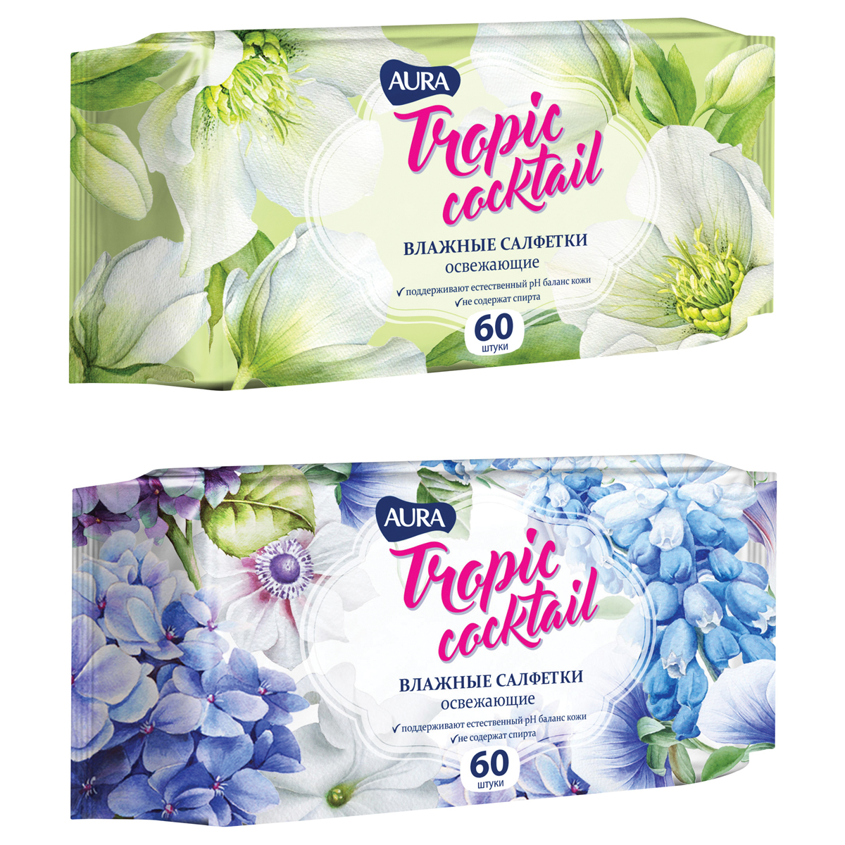 Влажные салфетки Aura Family Tropic Cocktail обеспечивают комфорт и чистоту в любой ситуации, наполняя кожу приятным ароматом тропиков.