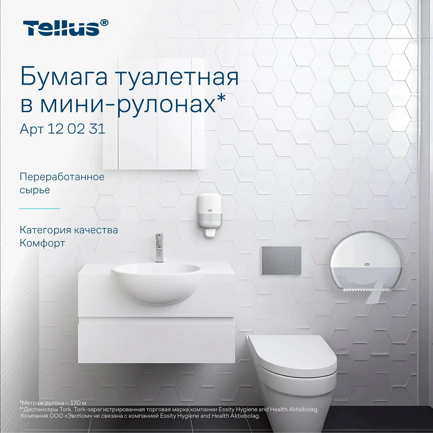 Бумага туалетная двухслойная Tellus Advanced mini, 170 м, с втулкой, без обёртки, 12 рулонов.