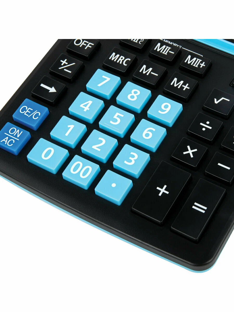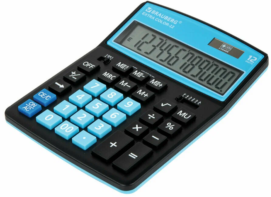 Калькулятор 12 разрядов, 15.5x20.6см, черно-голубой BRAUBERG EXTRA COLOR-12-BKBU