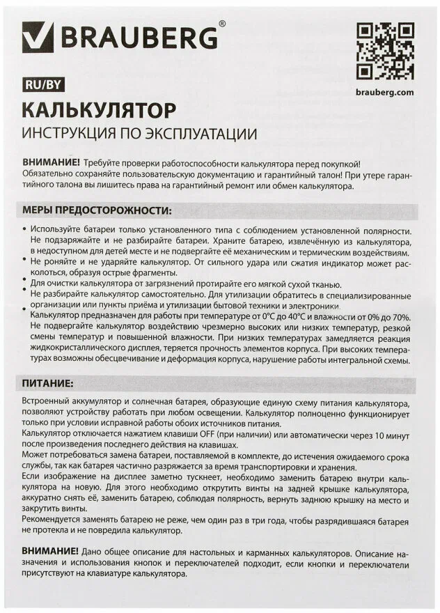 Калькулятор BRAUBERG EXTRA COLOR — прочное и долговечное решение для точных расчётов в бухгалтерии, офисе и повседневной работе.