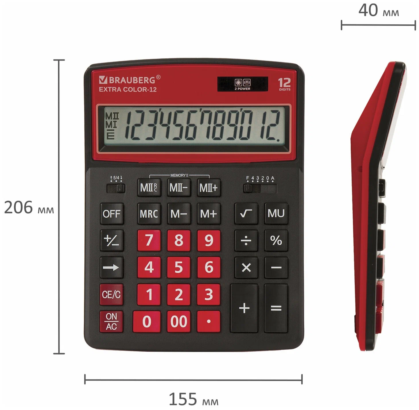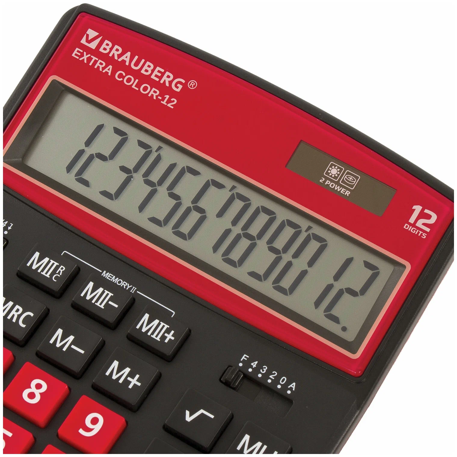 Калькулятор настольный BRAUBERG EXTRA COLOR-12-BKLG, 12 разрядов, 15,5 × 20,6 см, чёрно-малиновый.