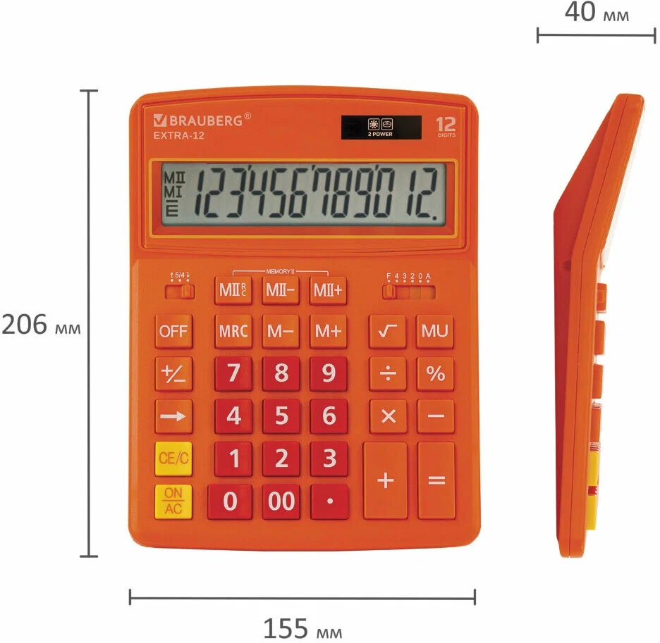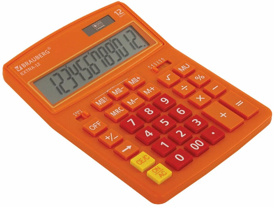 Калькулятор настольный BRAUBERG EXTRA-12-RG, 12 разрядов, 15,5 × 20,6 см, оранжевый.