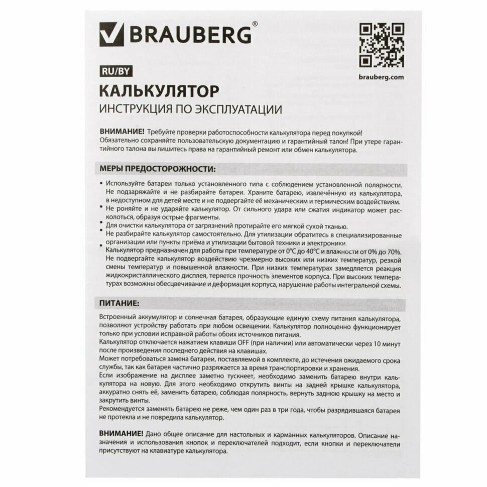 Калькулятор BRAUBERG EXTRA — долговечное и удобное решение для бухгалтерии, офиса и повседневных расчётов.