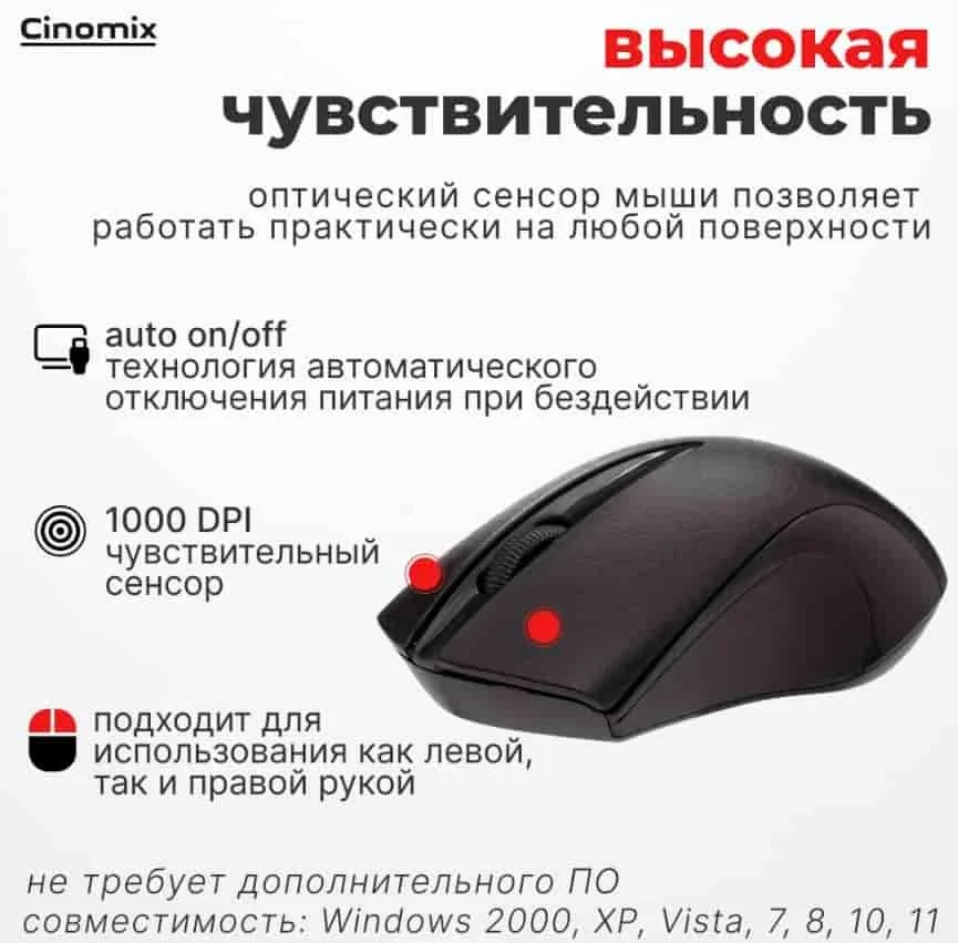 - Подключение: нано-ресивер 2.4 ГГц (USB)