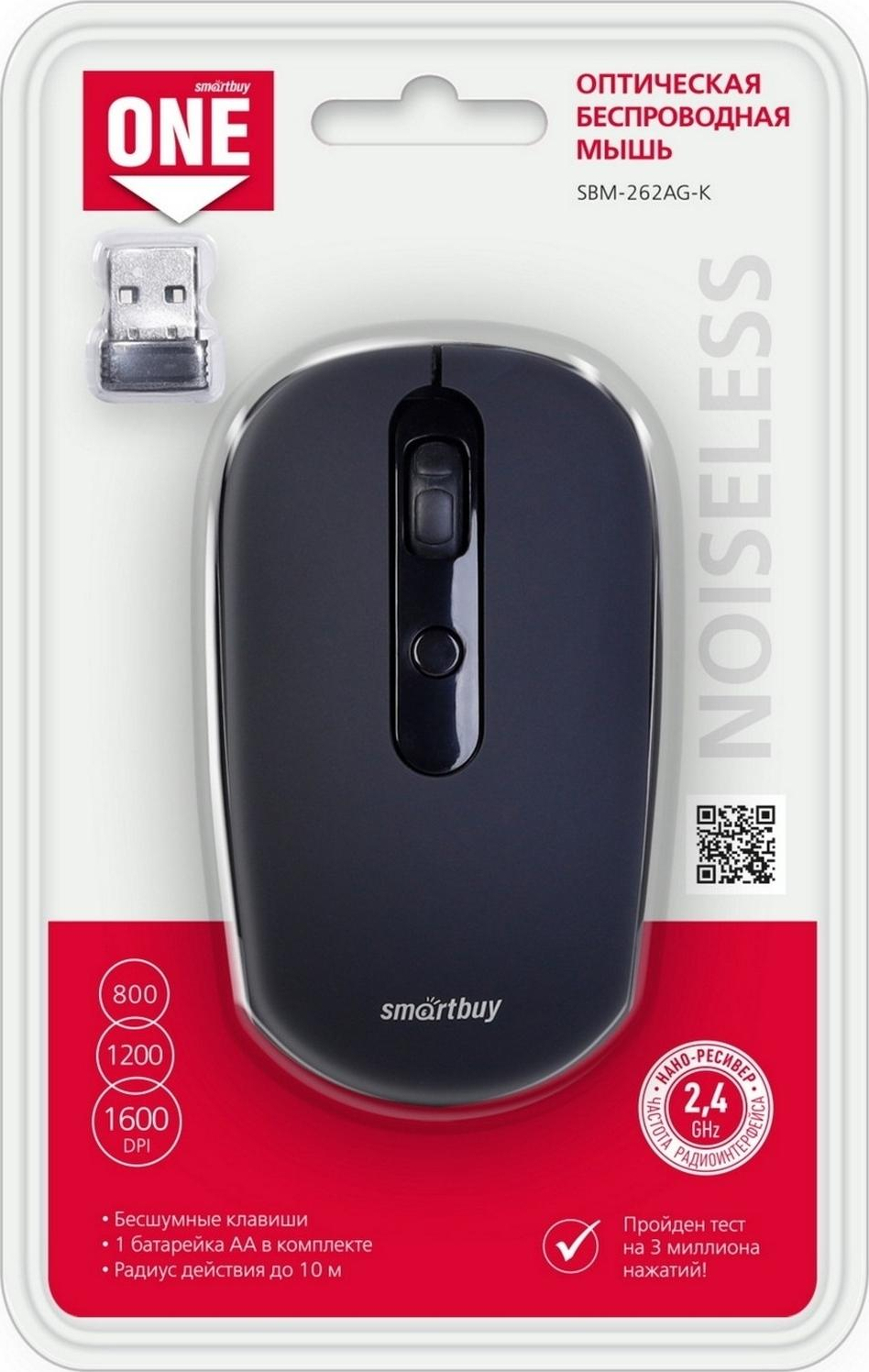 Мышь беспроводная, ONE 262AG, беззвучная, черная