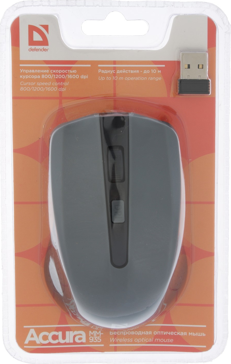 Мышь беспроводная Defender MM-935 Accura, серая.