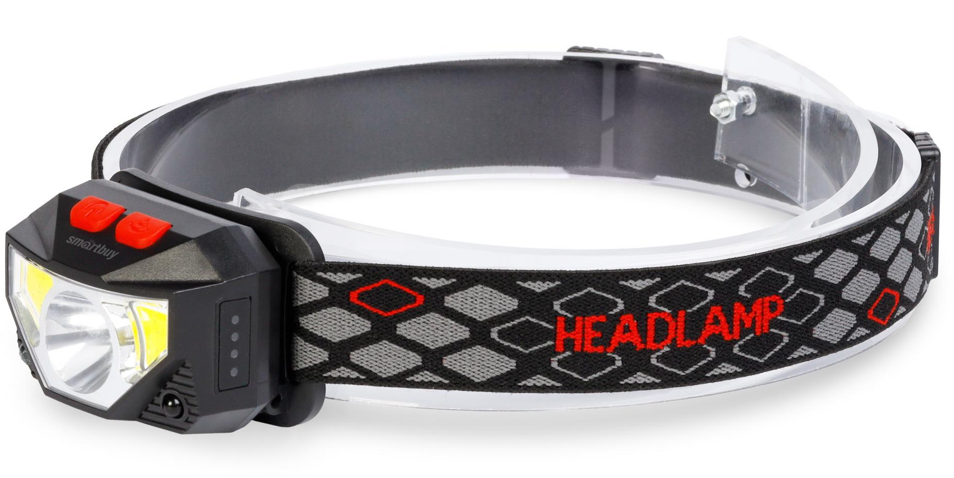 Фонарь налобный с сенсорным управлением, аккумуляторный SmartBuy, черный.