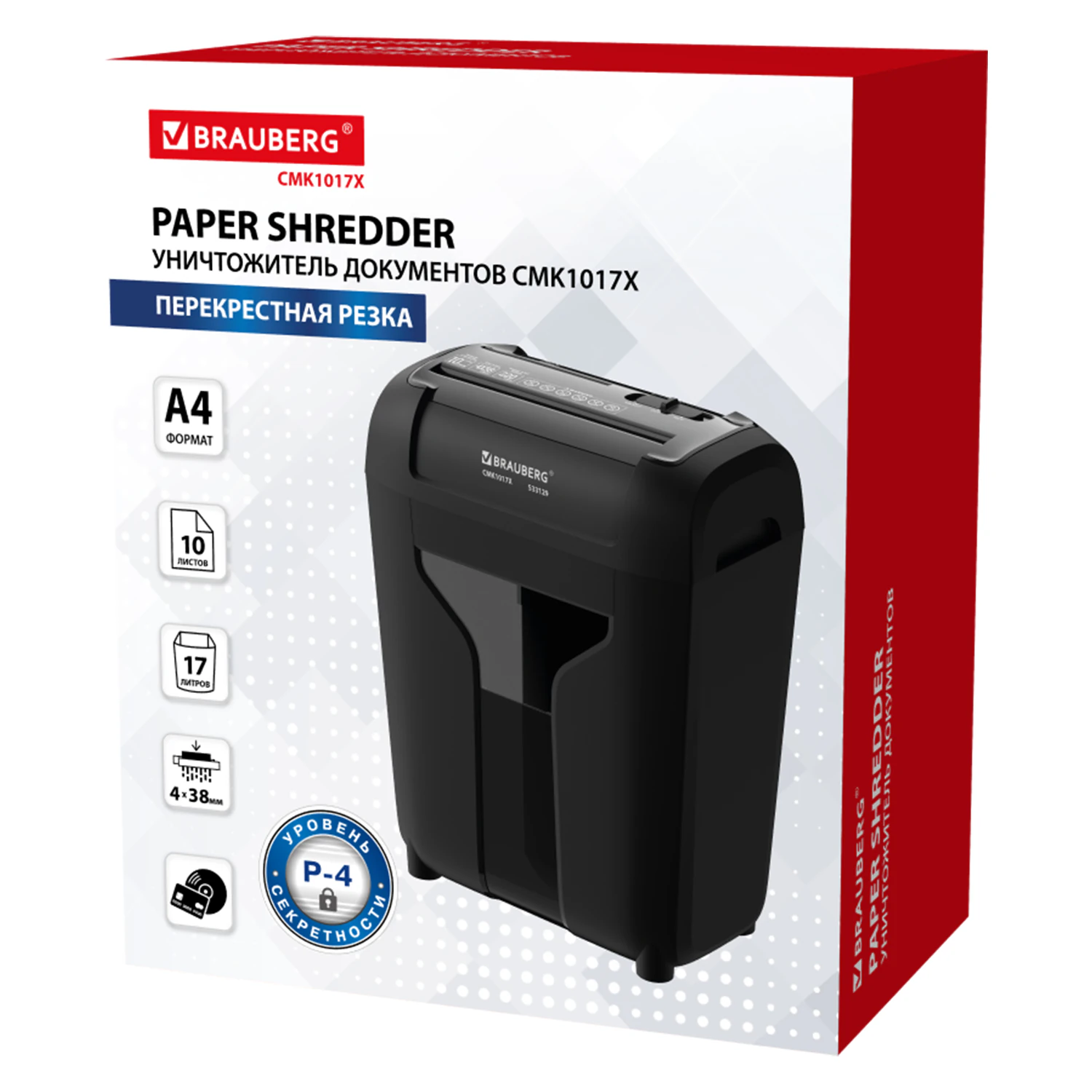 Шредер, уровень секретности 4 (4×38 мм), BRAUBERG CMK-1017.