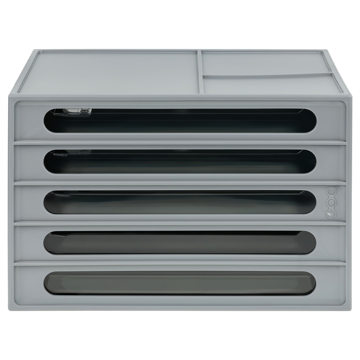 Блок из 4 выдвижных лотков СТАММ, серый корпус, тонированные чёрные лотки.