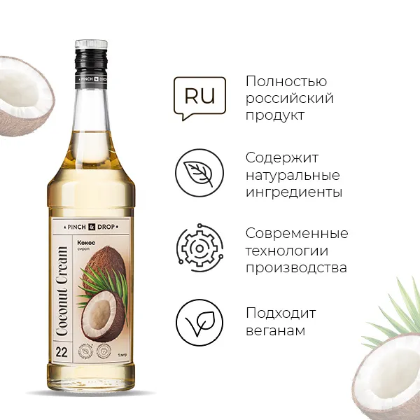 Вкус кокоса в сиропе — это сочетание нежности ореха и сладости сахарного сиропа. Товар в бутылке объемом 1 литр для баров, ресторанов и кафе.
