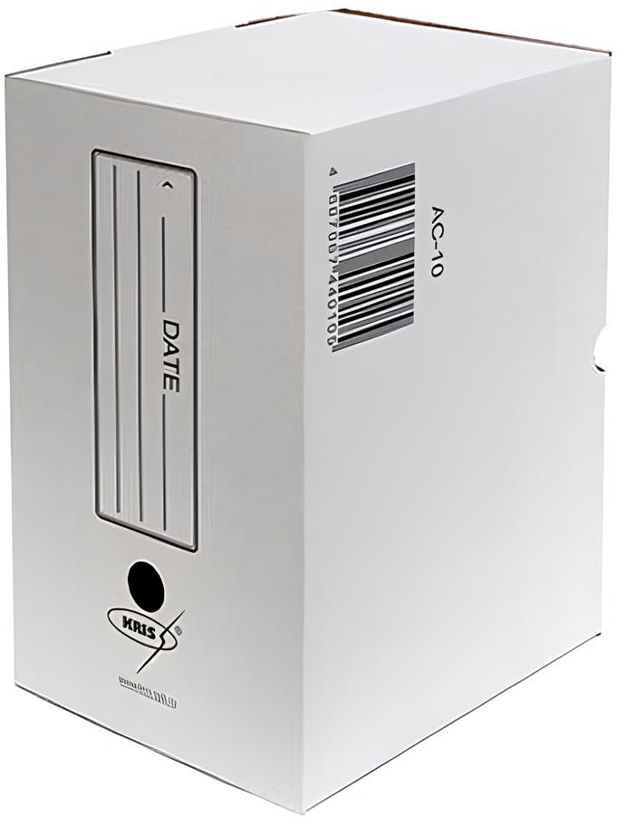Архивный короб KRIS размером 320х260х200 мм изготовлен из прочного картона белого цвета и подходит для хранения большого количества документов формата А4.