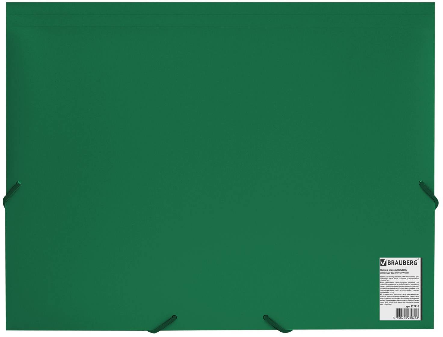 Папка с резинкой А4, 0,50мм, пластик, зеленая Brauberg