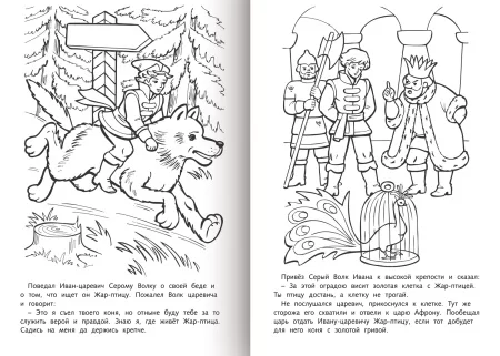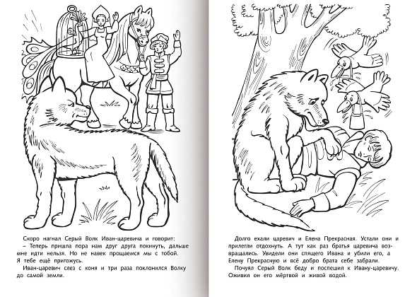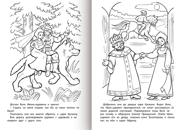 Раскраска детская А4, 8 л., на скобе, "Иван Царевич и серый волк", Hatber.