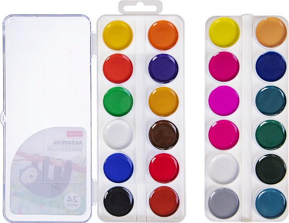 Акварель быстро высыхает, равномерно ложится на бумагу и обладает хорошей светостойкостью. Набор размещён в удобном пластиковом пенале с палитрой для смешивания красок на крышке.